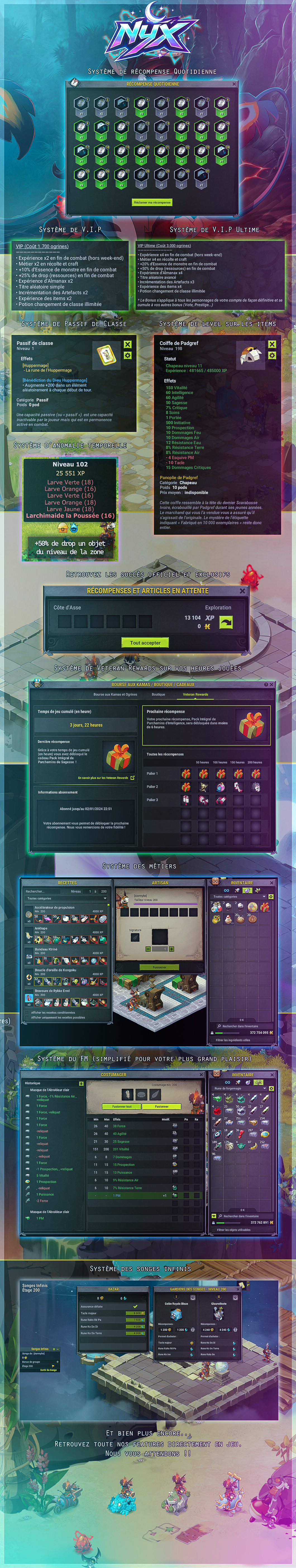 Sur Nyx, votre portail vers l'aventure est illimité. Avec tous les zaaps, zaapis et une multitude d'interactifs à votre disposition, explorez notre monde sans limites. Forgez des liens, découvrez des secrets, et embarquez pour un voyage interactif où chaque choix compte.